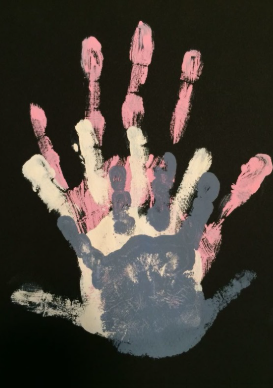 Na vašu dlaň/lapku maznáčika naneste rôzne farby a otočte ju na plátno. Vznikne tak jedinečný obrazec.